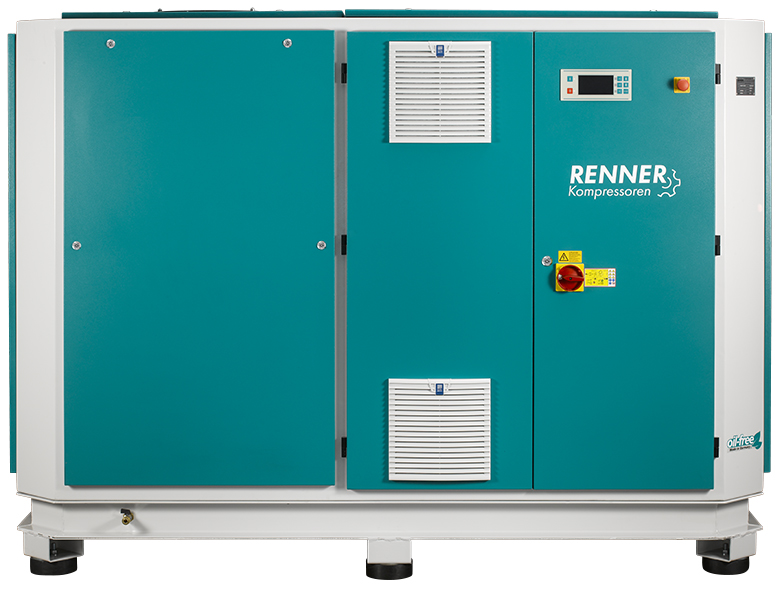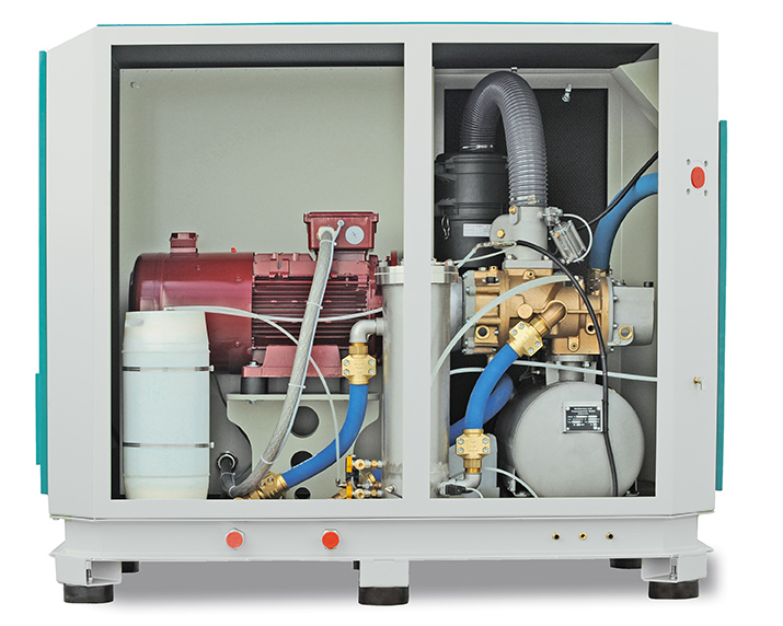 Die gebrauchsmustergeschützten, direktgetriebenen Kompressoren nutzen Wasser zur Abdichtung und Schmierung. Das Wasser entzieht dabei dem Gerät die Verdichtungswärme und versorgt permanent die wassereingespritzten Gleitlager. Durch die integrierte Wasseraufbereitung hat das Kreislaufwasser immer eine sehr hohe Qualität und es gibt keine Kalkablagerungen. Die Kompressoren gibt es sowohl luft- als auch wassergekühlt.